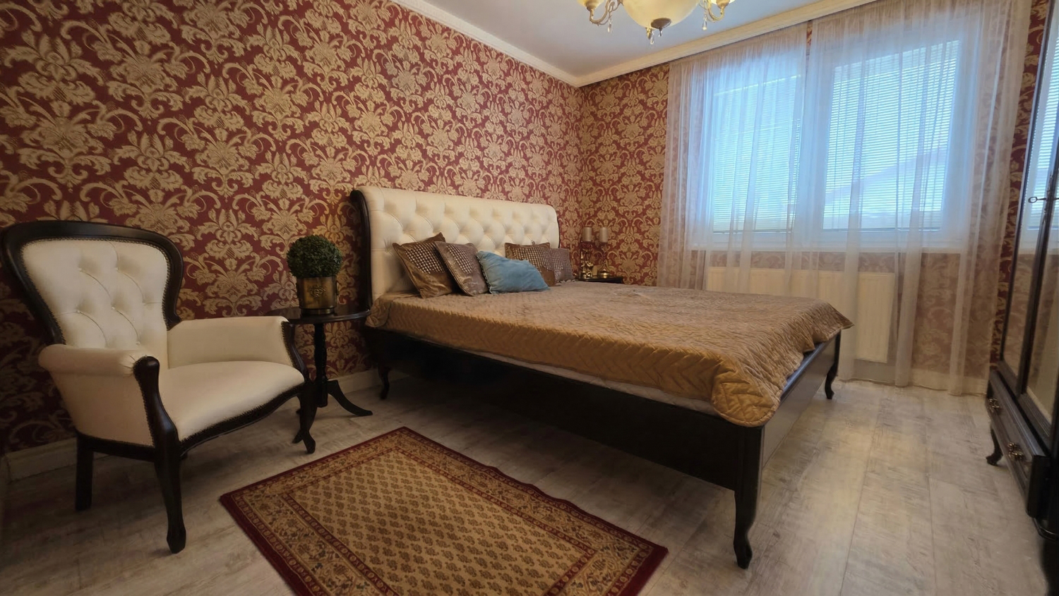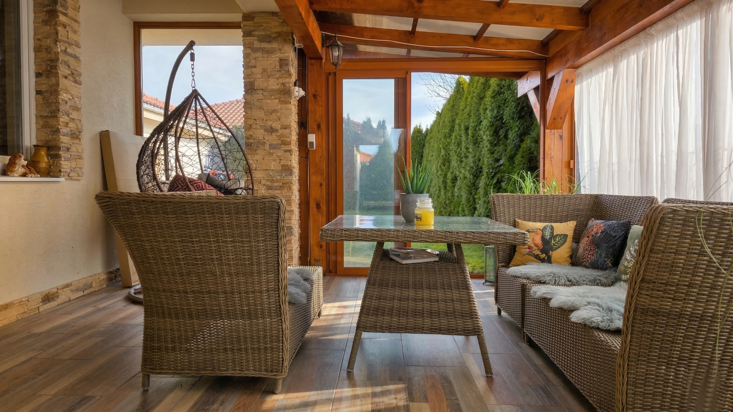 Lebo tento bungalov má štýl, súkromie a 100,57 m² komfortu bez schodov, s interiérom, ktorý si zapamätáte: textilné tapety, nábytok s charakterom, 16 m² zimná záhrada so sklenenými stenami, ktoré sa plne otvárajú = terasa aj extra izba v jednom. Všetko na rovinatom pozemku 504 m² s garážou 46 m² v pokojnej lokalite kúpeľného mesta.